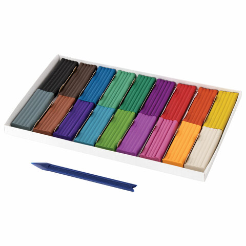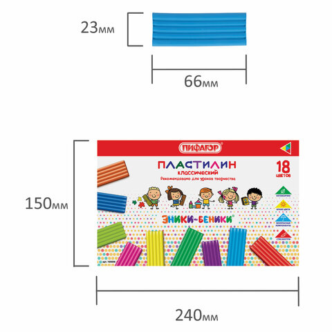 Пластилин классический ПИФАГОР "ЭНИКИ-БЕНИКИ" 18 цветов, 270 г, со стеком, картонная упаковка, 105036