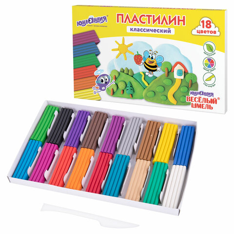 Пластилин классический ЮНЛАНДИЯ "ВЕСЁЛЫЙ ШМЕЛЬ", 18 цветов, 360 грамм, стек, ВЫСШЕЕ КАЧЕСТВО, 106432