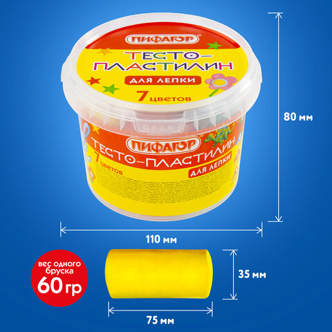 Пластилин на растительной основе (тесто для лепки) ПИФАГОР, 7 цветов, 420 г, пластиковое ведро, 104545