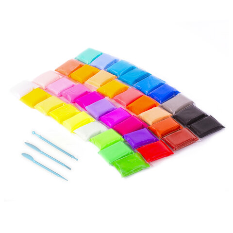 Пластилин супер лёгкий воздушный 36 шт. (32 цвета + 2 белых + 2 черных), 360 г, 3 стека, ЮНЛАНДИЯ, 105908