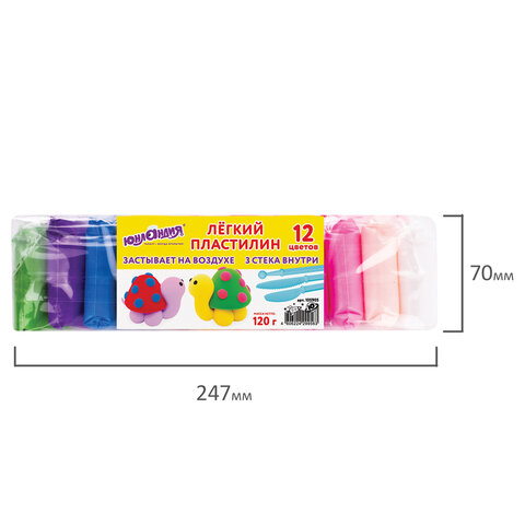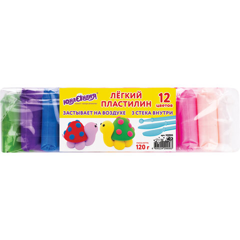 Пластилин супер лёгкий воздушный застывающий 12 цветов, 120 г, 3 стека, ЮНЛАНДИЯ, 105905