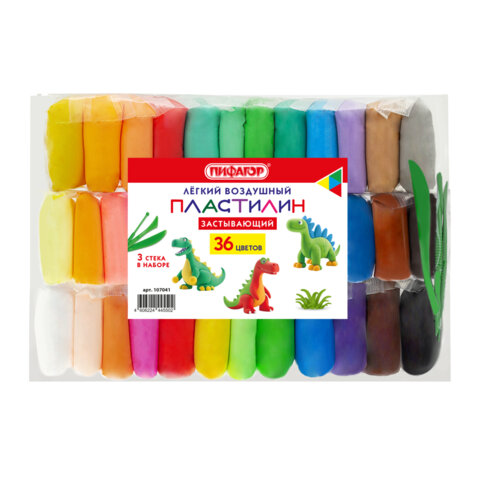 Пластилин супер лёгкий воздушный застывающий 36 цветов, 310 г, 3 стека, ПИФАГОР, 107041