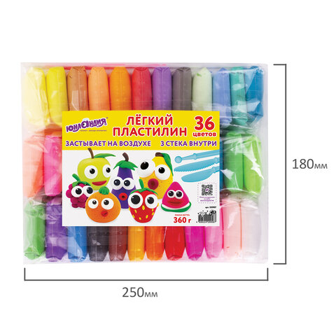 Пластилин супер легкий воздушный застывающий 36 цветов, 360 г, 3 стека, ЮНЛАНДИЯ, 105907