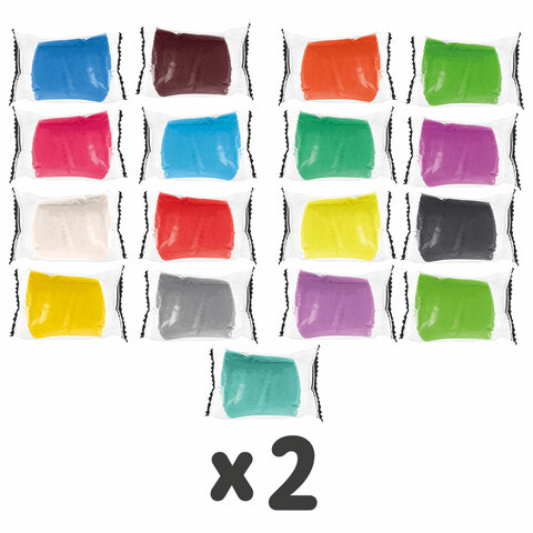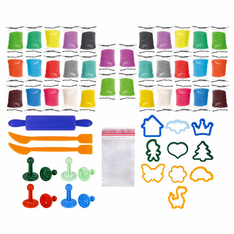 Пластилин-тесто для лепки BRAUBERG KIDS, 34 шт., 1700 г, 2 стека, 10 формочек, 4 штампика, 1 скалка, 10 пакетиков для хранения, 106723