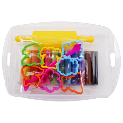 Пластилин в боксе ЮНЛАНДИЯ "ЮНЛАНДИК В ЗООПАРКЕ", 12 цветов, 130 г, скалка, стек, 7 формочек, 105863