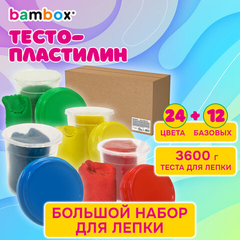 Тесто-пластилин для лепки СУПЕР ПЛАСТИЧНОЕ, 36 штук (24 цвета + 12 базовых), 3600 г, BAMBOX (БАМБОКС), 107250