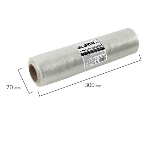 Пленка пищевая ПЭ 300 мм х 300 м, ГАРАНТИРОВАННАЯ ДЛИНА, 6 мкм, вес нетто 0,48 кг ±5%, LAIMA, 605039
