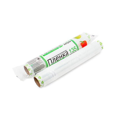 Пищевая пленка длиной 135 метров – выгодное решение для профессиональной кухни и большой семьи. Идеально для длительного хранения в холодильнике, заморозки, упаковки блюд и транспортировки.