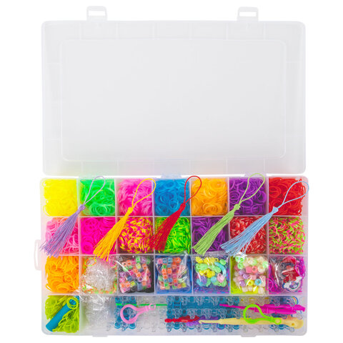 Набор резинок для плетения украшений 8 000 шт., 22 цвета, бокс, бусины, станок, BAMBOX (БАМБОКС), 665975