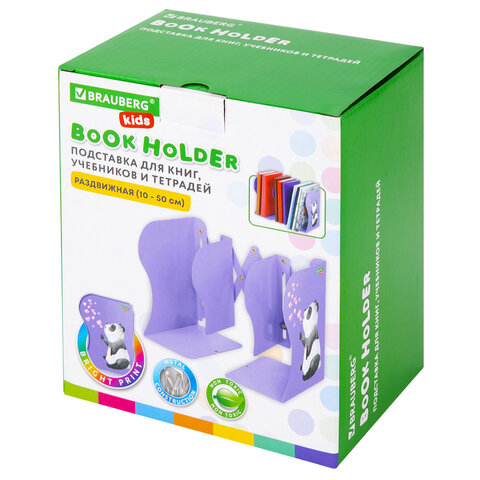 Подставка-держатель для книг и учебников BRAUBERG KIDS "Panda", раздвижная, металлическая, 238064