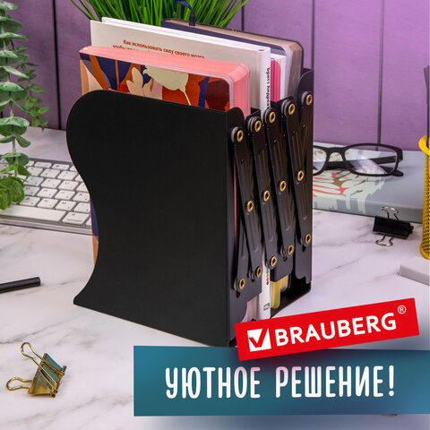 Подставка-держатель для книг и учебников BRAUBERG, раздвижная, металлическая, черная, 237904
