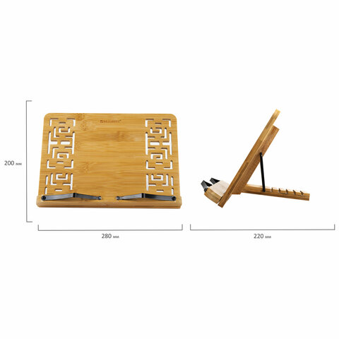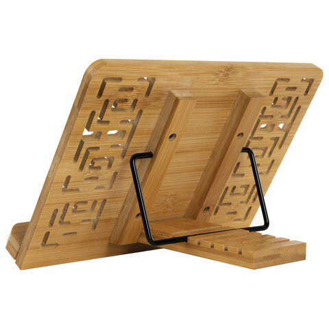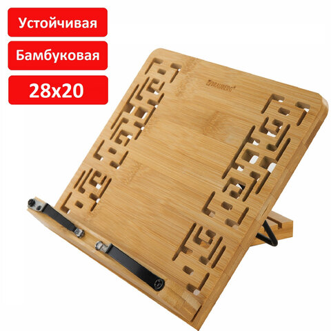 Подставка для книг и планшетов бамбуковая резная BRAUBERG, 28х20 см, регулируемый наклон, 237897
