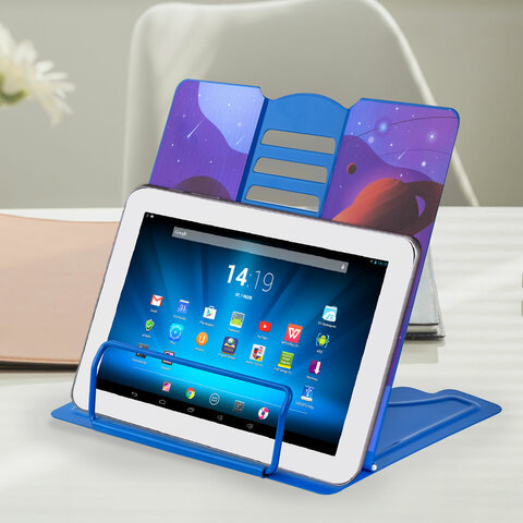 Подставка для книг и учебников большая BRAUBERG KIDS "Outer Space", регулируемый угол наклона, металлическая, 238055