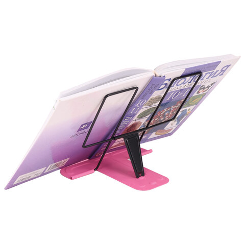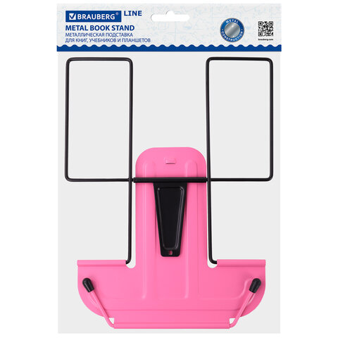 Подставка для книг и учебников BRAUBERG LINE, металлическая, розовая, европодвес, 238215