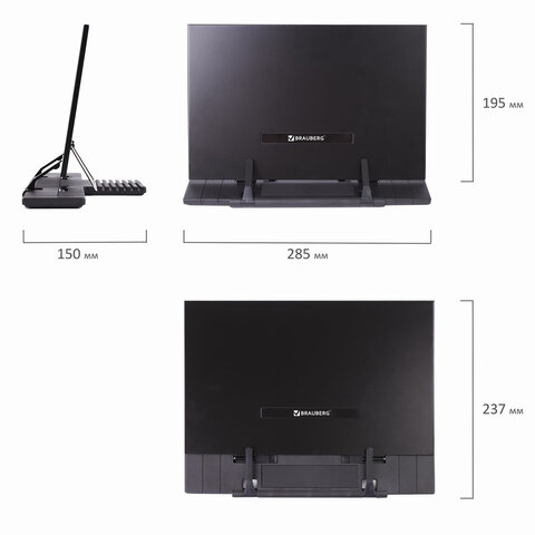Подставка для книг и учебников BRAUBERG, регулируемый наклон, металл/пластик, черная, 237446
