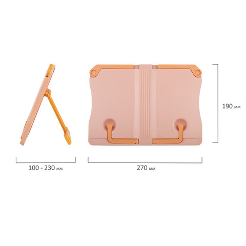 Подставка для книг и учебников ЮНЛАНДИЯ, регулируемый наклон, ABS-пластик, розовая, 237906