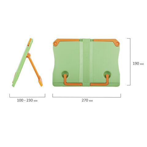 Подставка для книг и учебников ЮНЛАНДИЯ, регулируемый наклон, ABS-пластик, светло-зеленая, 237898