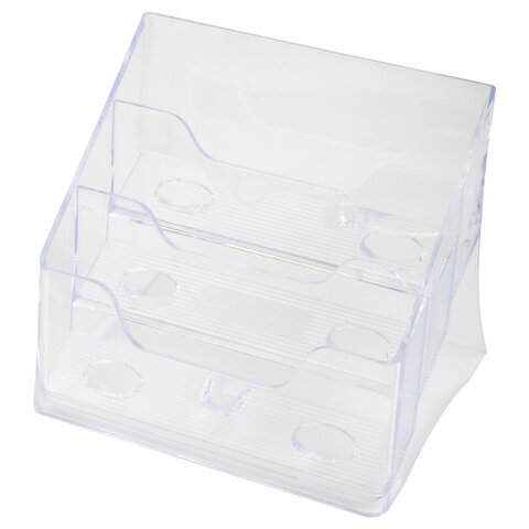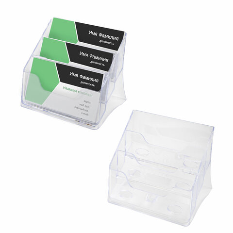 Подставка для визиток настольная BRAUBERG-CONTRACT, на 150 шт., 85х100х75 мм, 3 отделения, прозрачная, 235406