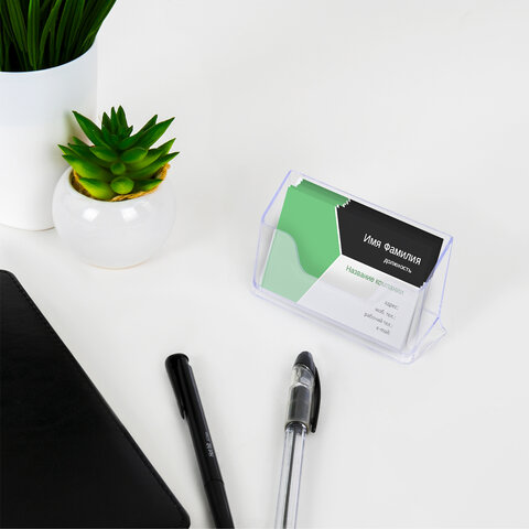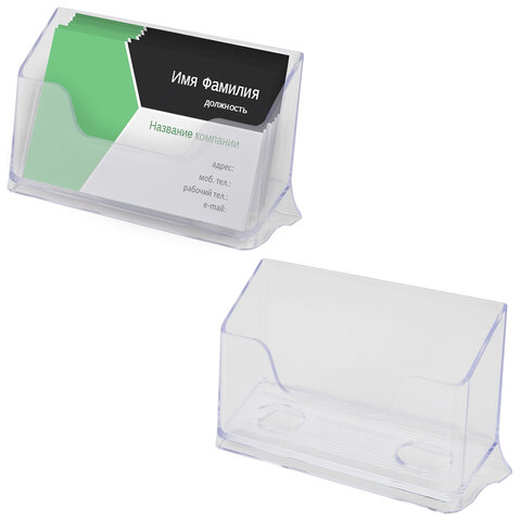 Подставка для визиток настольная BRAUBERG "CONTRACT", на 50 визиток, 100х40х65 мм, прозрачная, 232287