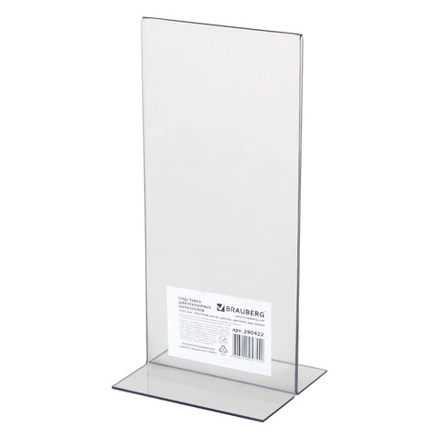 Двусторонняя вертикальная настольная подставка BRAUBERG подходит для размещения меню и рекламных материалов.