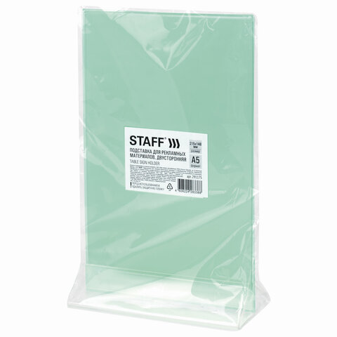 Двухсторонняя вертикальная настольная подставка STAFF подходит для размещения меню, рекламных материалов формата А5.