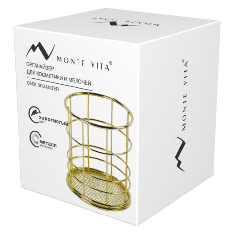 Металлический органайзер MONTE VITA – это стильное, практичное и долговечное решение для хранения канцелярских принадлежностей, мелких предметов, косметики и кистей для макияжа. Он с легкостью впишется в любой интерьер.
