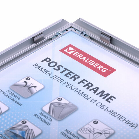 Рамка настенная для рекламы БОЛЬШОГО ФОРМАТА (297х420 мм), алюминиевая, прижимные стороны, BRAUBERG, 232204