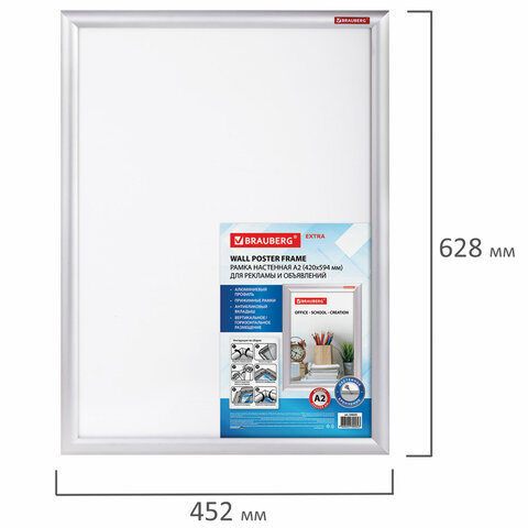 Рамка настенная с защелкивающимся профилем BRAUBERG "Extra" предназначена для размещения печатных материалов. Идеально подходит для использования в офисе, торговых залах, пунктах выдачи, медицинских и других учреждениях.