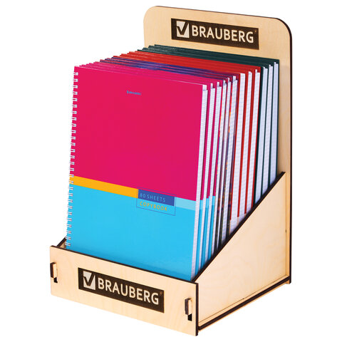 Брендированная подставка BRAUBERG предназначена для выгодного представления тетрадей, блокнотов и ежедневников формата B5 и A4 на витрине!
