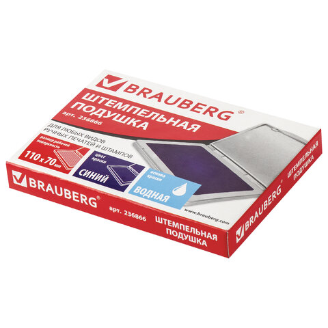 Штемпельная подушка BRAUBERG, 120х90 мм (рабочая поверхность 105х65 мм), синяя краска, 236866
