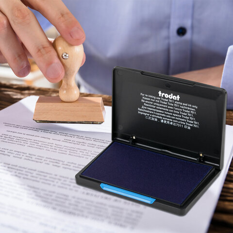 Штемпельная подушка заправлена краской TRODAT. Подходит для всех типов ручных печатей с полимерным и резиновым клише. Обеспечивает десятки тысяч оттисков без дозаправки.