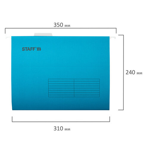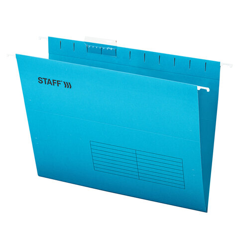 Подвесные папки формата A4 STAFF предназначены для размещения в подвесной регистратуре (по бокам имеются специальные крючки). Позволяют организовать хранение данных большой информационной базы.