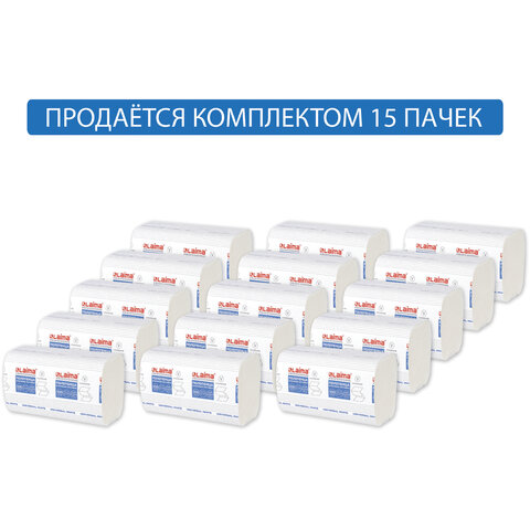 Полотенца бумажные 200 шт., LAIMA (H3) UNIVERSAL WHITE, 1-слойные, белые, КОМПЛЕКТ 15 пачек, 23x20,5, V-сложение, 111342
