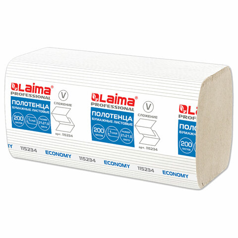 Полотенца бумажные 200 шт., LAIMA ECONOMY (H3), 1-слойные, натуральный цвет, КОМПЛЕКТ 20 пачек, 21х21,6 см, V-сложение, 115234