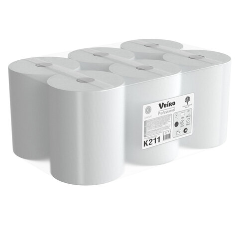 Полотенца бумажные рулонные 150 м, VEIRO Professional (H1) COMFORT, 1-слойные, КОМПЛЕКТ 6 рулонов, K211