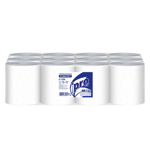 Полотенца бумажные с центральной вытяжкой 120 м, PROtissue (M1) COMFORT, 1-слойные, белые, КОМПЛЕКТ 12 рулонов, С194