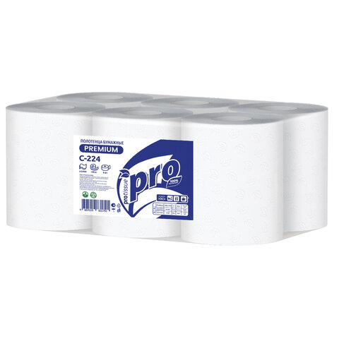 Полотенца бумажные с центральной вытяжкой 150 м, PROtissue (M1) PREMIUM, 2-слойные, белые, КОМПЛЕКТ 6 рулонов, С224