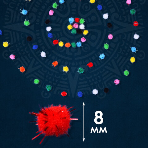 Помпоны для творчества, блестящие, 10 цветов, 8 мм, 60 шт., ОСТРОВ СОКРОВИЩ, 661423