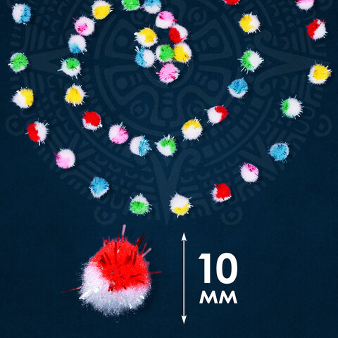 Помпоны для творчества, многоцветные, блестящие, 10 мм, 60 шт., ОСТРОВ СОКРОВИЩ, 661433