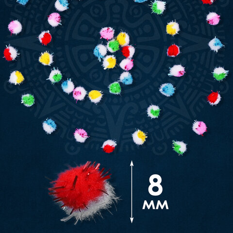 Помпоны для творчества, многоцветные, блестящие, 8 мм, 100 шт., ОСТРОВ СОКРОВИЩ, 661432