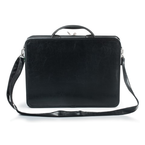 Портфель "Паритет", изготовленный из искусственной кожи черного цвета, — стильный классический аксессуар для офисных сотрудников.