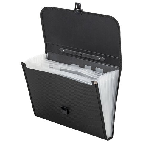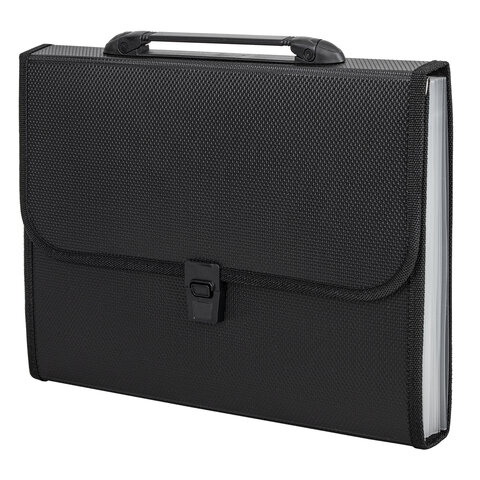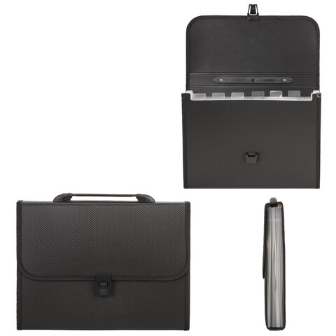 Папка-портфель пластиковая STAFF А4 (330х235х50 мм), 7 отделений, с окантовкой, индексные ярлыки, черный, 221206