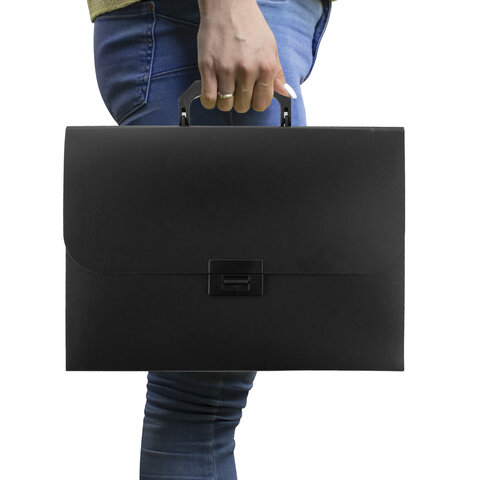 Портфель пластиковый STAFF А4 (330х235х36 мм), 13 отделений, индексные ярлыки, черный, 229245