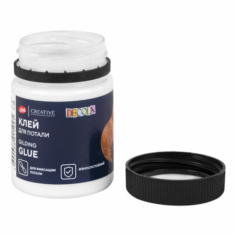 Клей для потали "Декола" Невская Палитра предназначен для декора твердых поверхностей из дерева, картона, пластика, стекла и металла. Клей на водной основе применяется для нанесения потали и сусального золота.