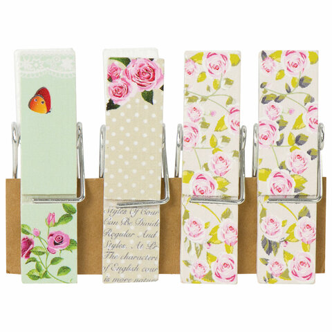 Прищепки декоративные широкие "Шебби-шик", 4 штуки, 7,2 см, ассорти, ОСТРОВ СОКРОВИЩ, 662679