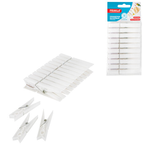 Прищепки бельевые 7,8 см, КОМПЛЕКТ 10 штук, пластик, белые, PRIMILA (ПРИМИЛА) ORIGINAL, 700512