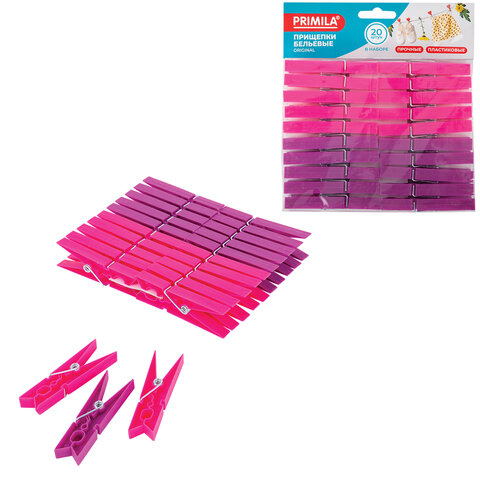 Прищепки бельевые 7,8 см, КОМПЛЕКТ 20 штук, пластик, ассорти, PRIMILA (ПРИМИЛА) ORIGINAL, 700511