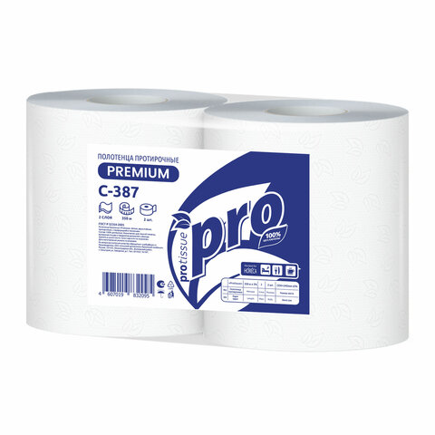 Бумага протирочная 350 м с перфорацией, PROtissue (W1) 2-слойная, 1000 листов 24х35 см, КОМПЛЕКТ 2 шт., С387