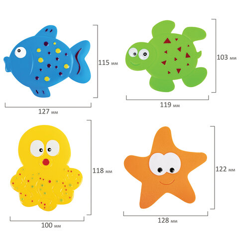 Мини-коврики для ванной BRAUBERG KIDS – это яркие фигурки для купания на присосках, которые крепятся на любую гладкую поверхность, при этом не оставляют следов. Они сделаны из безопасных материалов, сертифицированы и имеют множество способов применения.