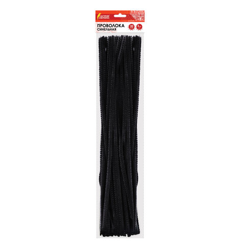 Проволока синельная для творчества "Пушистая", черная, 30 шт., 0,6х30 см, ОСТРОВ СОКРОВИЩ, 661534
